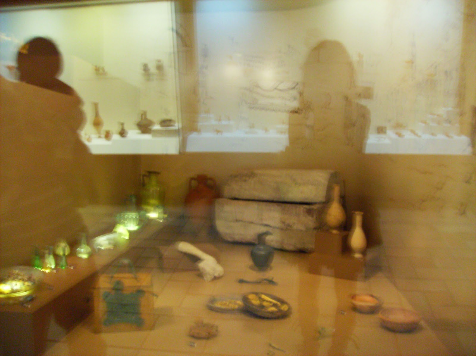 Burada ise eski insanların kullandıkları kap kacak ve ağlama şişeleri.İstanbul Arkeoloji müzesindeki Ağlayan Kadınlar lahtini hatırlarsınız; http://www.istanbularkeoloji.gov.tr/i/content/52_4_aglayan-kadinlar-lahdi.jpg